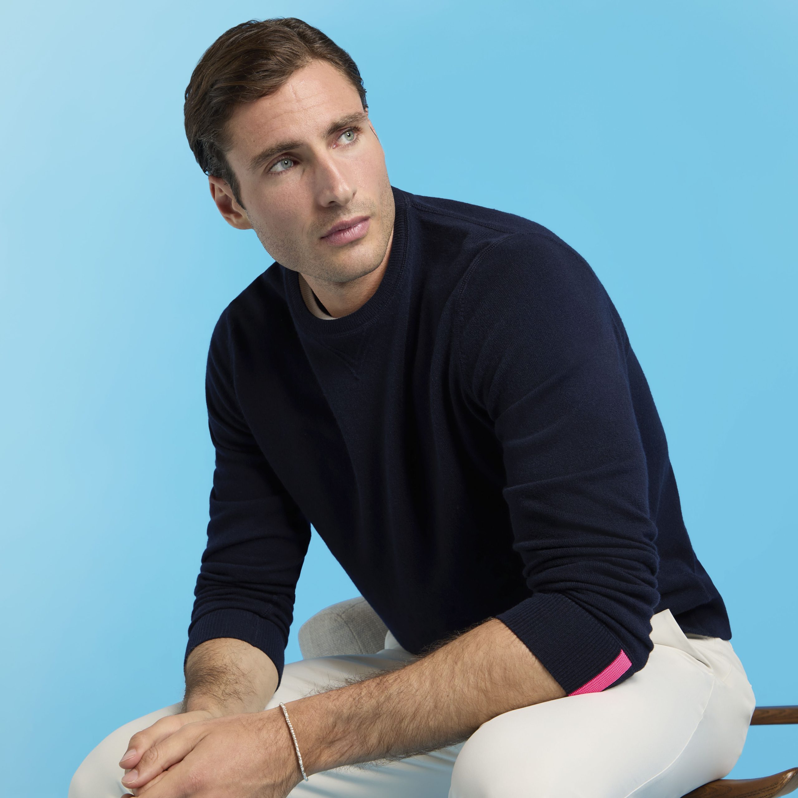 A CASHMERE SWEATER IS SIMPLY A FALL STAPLE. OURS IS MADE WITH SUPERSOFT AND BREATHABLE CASHMERE, KEEPING YOU FEELING COMFORTABLE AND LOOKING POLISHED ALL DAY LONG. FROM MEETINGS AT THE OFFICE TO DINNERS AT THE CLUBHOUSE, THIS CREWNECK-STYLE SWEATER WORKS GREAT BY ITSELF OR LAYERED OVER YOUR FAVOURITE G/FORE POLO. – G/FORE GMS000050