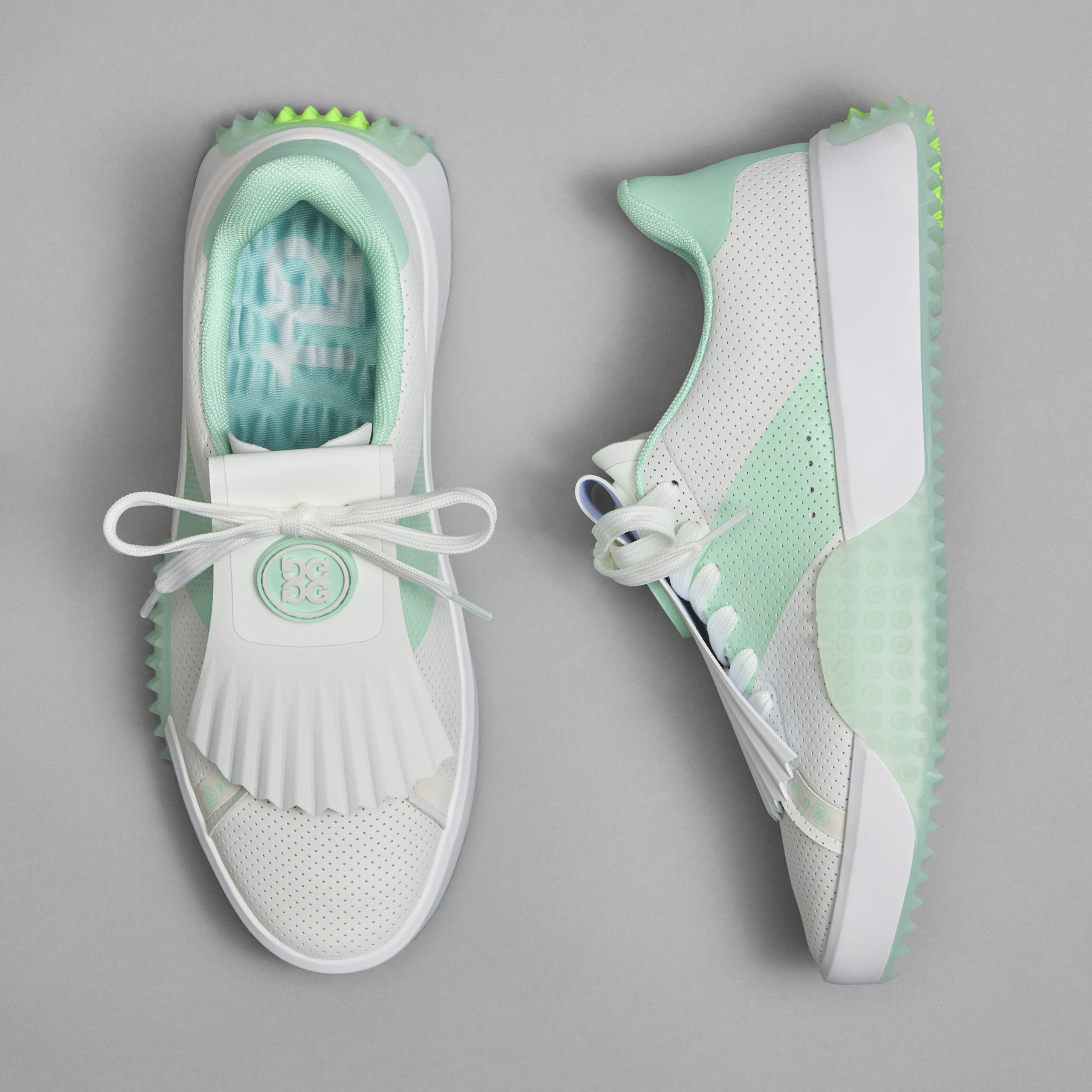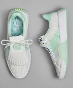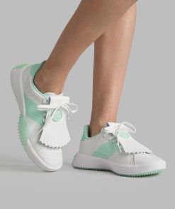 G/FORE Women’s G.112 Perforated Saddle Stripe Kiltie Golf Shoe | Snow & Blush | Women’s Shoes